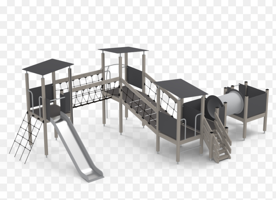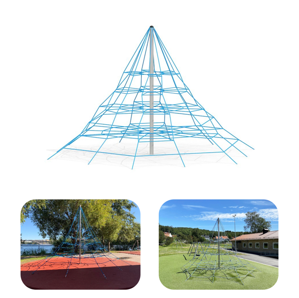 Marken runt ställningen består av mjukt underlag för att skydda barnen vid fall och förebygga olyckor. Klätterställningen byggs med robusta material för att hålla länge.